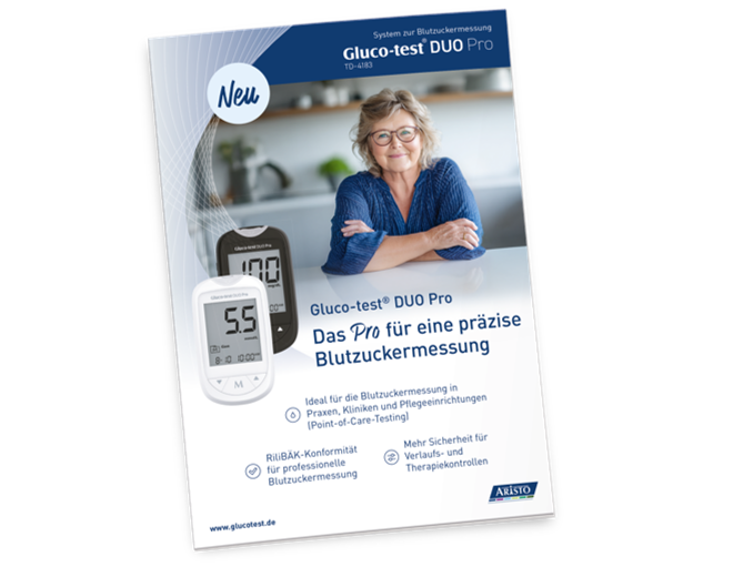 Mehr Lebensqualität durch Eigenverantwortung in der Diabetestherapie. Blutzuckermessen kann ganz problemlos einfach sein! Das neue Gluco-test DUO Pro ist ein bewährtes Blutzuckermessgerät – jetzt noch präziser. Mit dem Gluco-test DUO Pro messen Sie Ihren Blutzucker einfach, schnell und zuverlässig. Die weiterentwickelte Technologie unterstützt Sie dabei, Ihre Werte im Alltag sicher im Blick zu behalten.